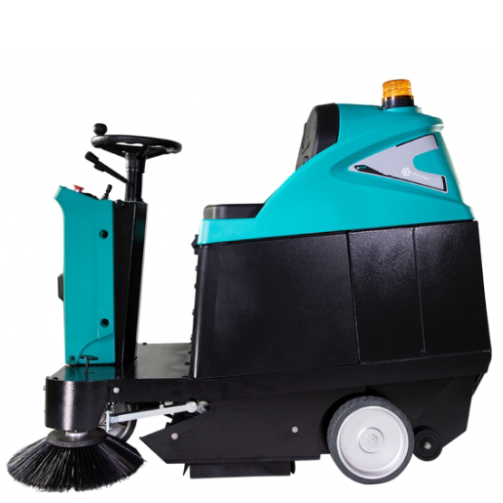 TS1300 is a commercial and industrial ride-on floor sweeper machine, designed for medium-sized large-area indoor and outdoor cleaning tasks. Batteries powered, and with a dust filtration with automatic vibration system, it is suitable for cleaning in areas such as airports, bus stations, parking stations, large-scale logistics warehouses, production workshops, etc