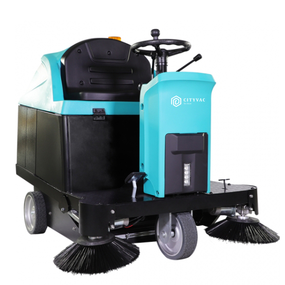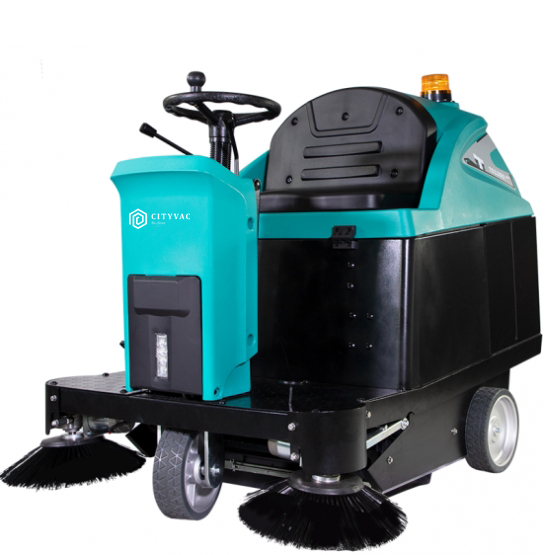 TS1300 is a commercial and industrial ride-on floor sweeper machine, designed for medium-sized large-area indoor and outdoor cleaning tasks. Batteries powered, and with a dust filtration with automatic vibration system, it is suitable for cleaning in areas such as airports, bus stations, parking stations, large-scale logistics warehouses, production workshops, etc